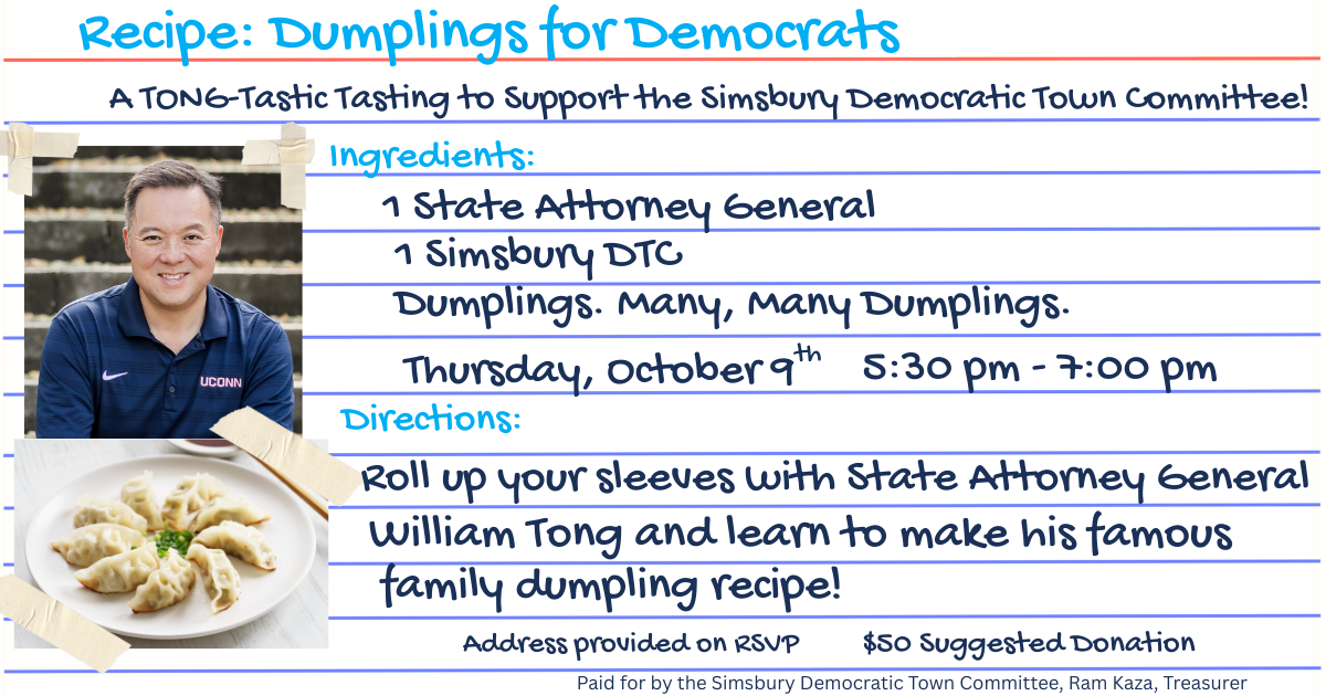 Your minimum $10 donation to help support the Simsbury Democratic Town Committee’s election activities gets you this fabulous lawn sign!